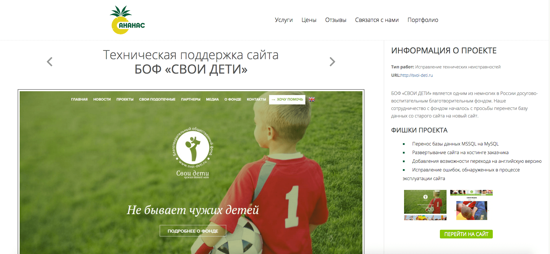 Тогда в «Ананас» обратились представители фонда. Мы посчитали, что ничего невозможно в этой задаче нет, и решили ее за один день. Единственное неудобство – это общение с предыдущим исполнителем, с которым у нас возник некий «языковой» барьер. В дальнейшем мы решили все разногласия и внесли на сайт еще несколько изменений.