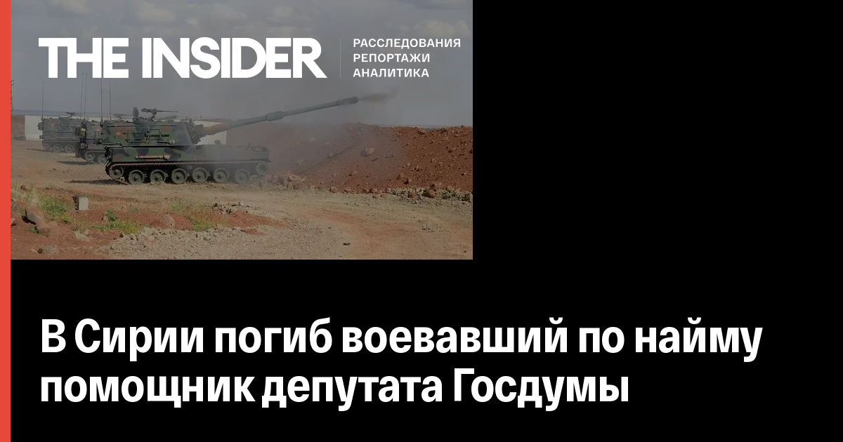 В Сирии погиб воевавший по найму помощник депутата Госдумы
