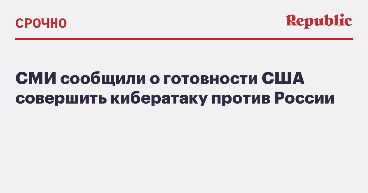 США применит кибероружие, «если сочтет это необходимым». Телеканал отмечает, что проникновение в российскую инфраструктуру является ответом на кибератаки России, Китая и других стран, вредоносные ПО которых могут тушить свет и отключать Интернет в городах.
