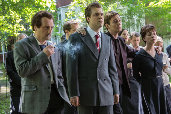 Дело, конечно, не в буквальных совпадениях. Не так много осталось тех, кто помнит, что в реальном Доме литераторов в ресторане никогда не танцевали, а настоящие обстоятельства жизни упомянутых персонажей очень отдаленно напоминают те, что нам показали по телевизору. Хуже, что сериал в принципе не создает никакой атмосферы, он вне стиля времени, вне ауры искусства. Однако, извините, это легко прощают телемылу, рассчитанному на повседневное потребление. Да, нет вкуса, запаха и обаяния, но обычно обходимся же. Зато есть трюк: вот смотрите, узнаёте — Окуджава? Не узнаёте? Ну и не надо, мы его в общих чертах обозначили. Есть и знак Высоцкого, и даже манекены Пастернака и Эрнста Неизвестного — этот последний не очень знаком публике, поэтому в кадре лепит скульптуры, чтобы не перепутали. В целом-то всё как надо: вот герои слушают «Голос Америки», вот обсуждают события в Новочеркасске, вот хоронят Пастернака, а вот и Хрущев запретительно машет указательным пальцем. Казалось бы, чего же больше, чем вы недовольны?