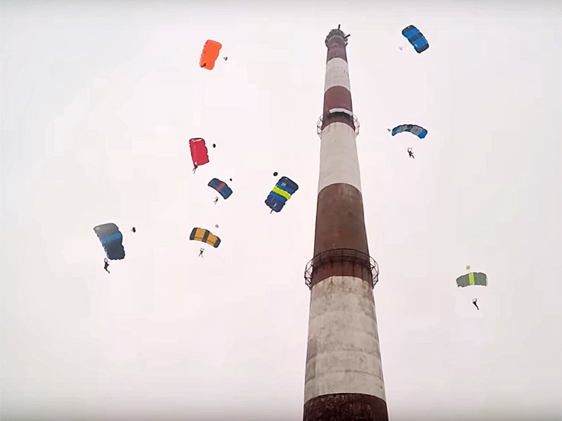 Экстремалы из Уральской федерации бейсджампинга установили новый рекорд: 6 ноября сразу девять спортсменов одновременно прыгнули с парашютом с трубы высотой 140 метров в городе Сухой Лог Свердловской области.