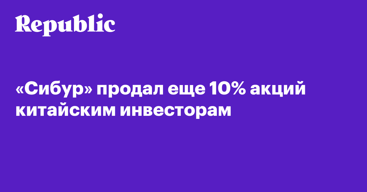 «Сибур» продал еще 10% акций китайским инвесторам