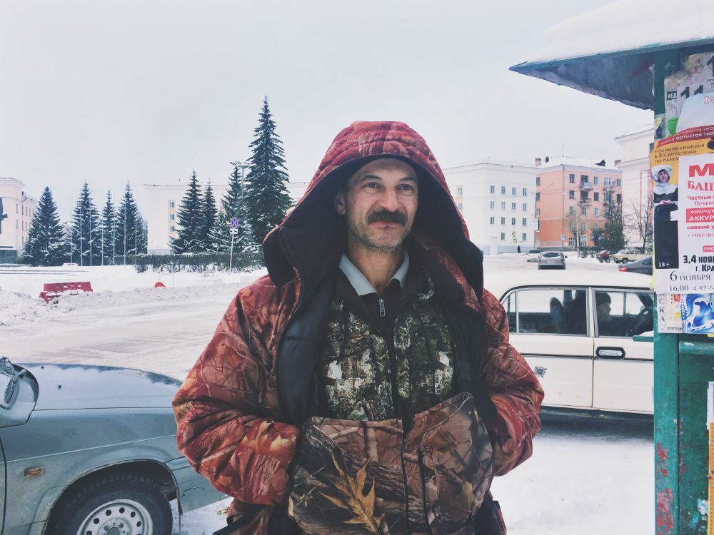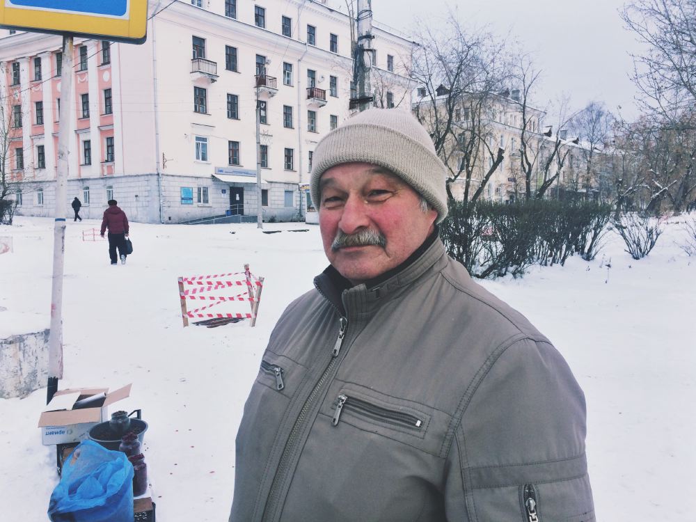 Валерий Костылев, продает кедровые орехи на улице, поселок Андриановичи Свердловской области