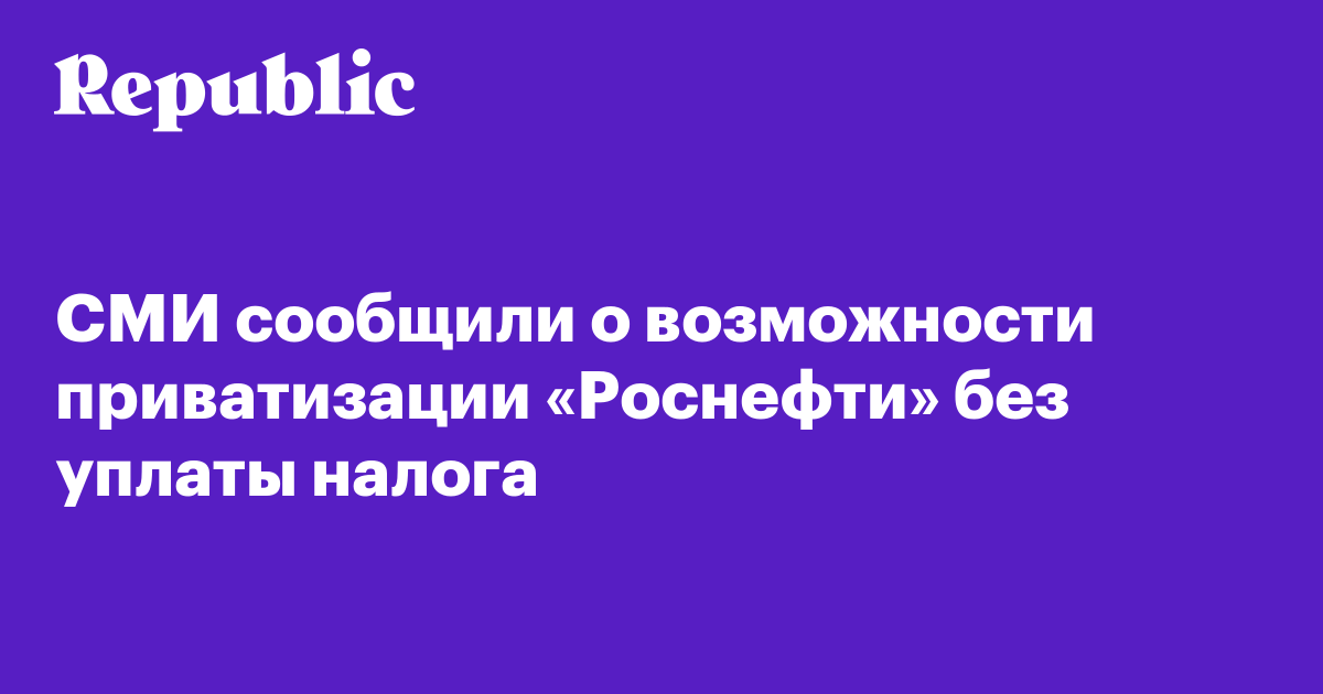 Минфин и «Роснефтегаз» возможность приватизации без уплаты налога РБК не прокомментировали.