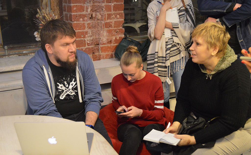 Участники митапа. Виктор Карягин, администратор SEO-чата (@seochat) (слева). Фото: Мария Борисёнок.