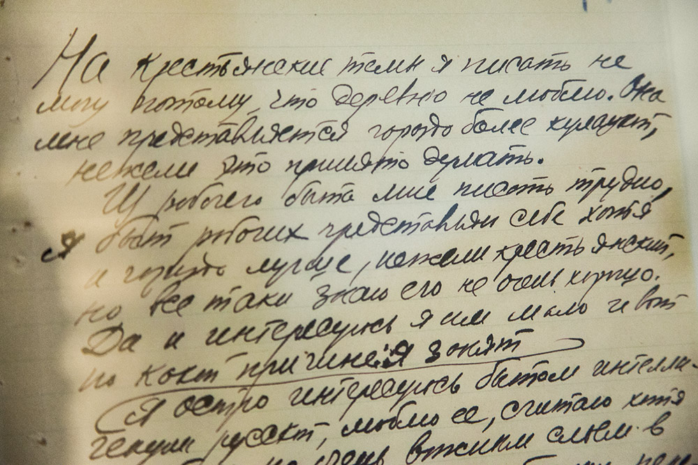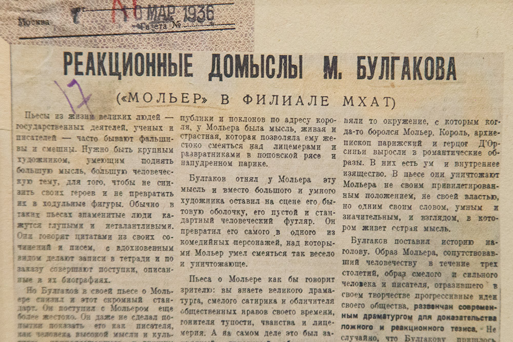 Здесь видно, как серьезно работал Булгаков над своими пьесами и текстами. Про Мольера он прочитал практически все, переводил «Полоумного Журдена» и писал биографический роман для серии ЖЗЛ о Мольере, который так и не вышел. Булгаковский роман о Мольере был опубликован сильно позже. Мало кто знает, что Булгаков читал на нескольких языках, в частности есть тетради, исписанные его почерком по-французски. Когда он взялся за постановку «Дон Кихота», он выучил испанский. До этого, во время работы над Диккенсом, он делал выписки по-английски.