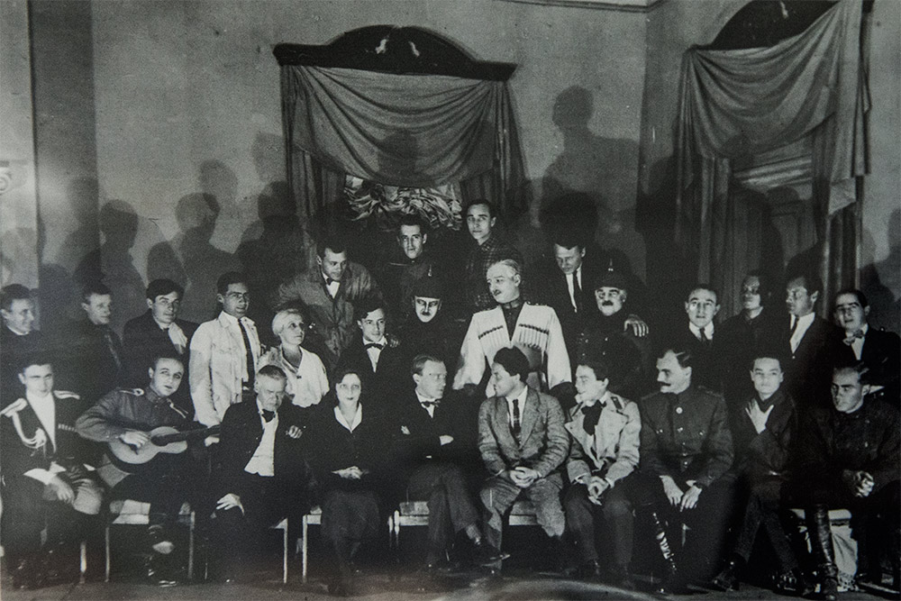 Эта фотография сделана 22 сентября 1926 года, в день сбора труппы, работавшей над постановкой пьесы «Дни Турбиных», и в тот же день Булгаков был сопровожден на Лубянку на допрос. Оставалось две недели до премьеры, назначенной на начало октября, и в эти дни никто не знал, выйдет спектакль или нет. Спектакль о гражданской войне по автобиографической пьесе был, конечно, очень провокативным. Для МХАТа эта постановка была невероятна важна — первая важная современная пьеса, которую они взяли сознательно, делая спектакль для молодежи. В эти же дни разворачивается невероятная битва всех советских цензурных ведомств — разрешать или запрещать?