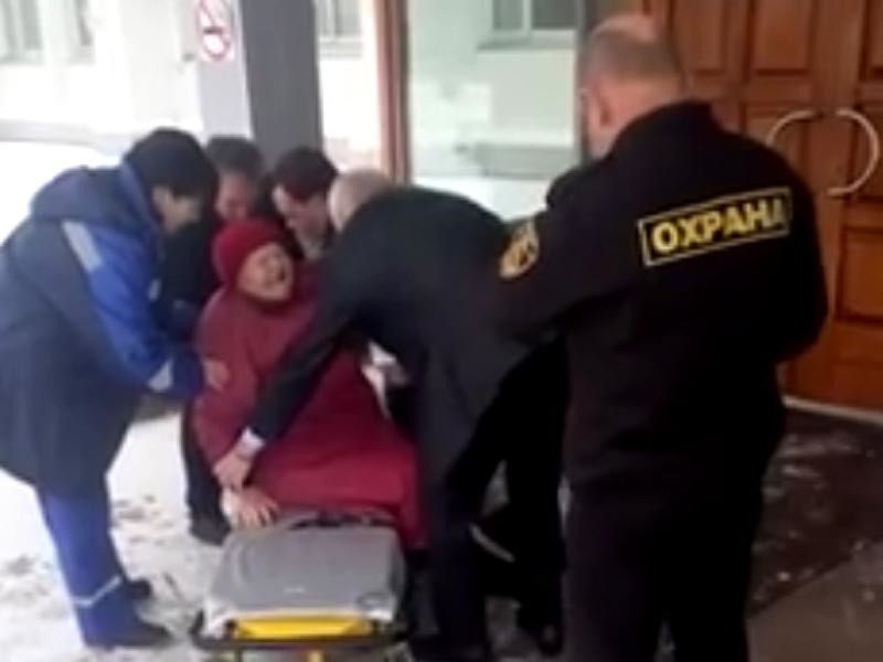 Пришедшая на прием в мэрию Красноярска 90-летняя пенсионерка упала на скользком крыльце и сломала ногу (ВИДЕО)
