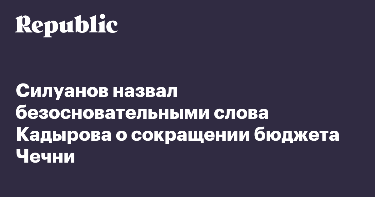 Кадыров в начале ноября, говоря о финансировании субъектов РФ, назвал «странным» применение к республике «единых для всех регионов стандартов». Ранее глава Чечни счел неприемлемым сокращение бюджета республики.