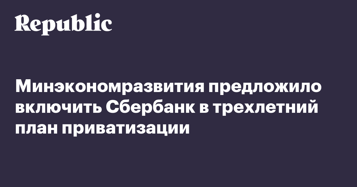 Минэкономразвития предложило включить Сбербанк в трехлетний план приватизации