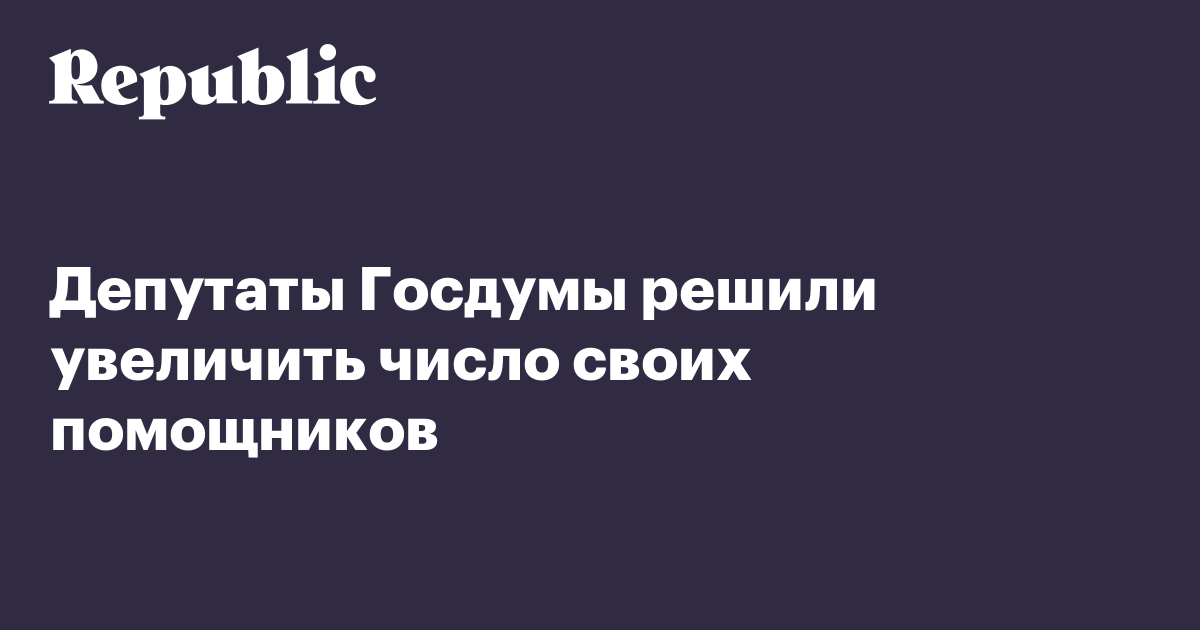 Как уточняет «Газета.Ru», предполагается увеличить число тех помощников, которые будут работать в регионах, от которых избраны депутаты. Их будет пять, число тех, кто работает непосредственно в парламенте, останется прежним – два человека.