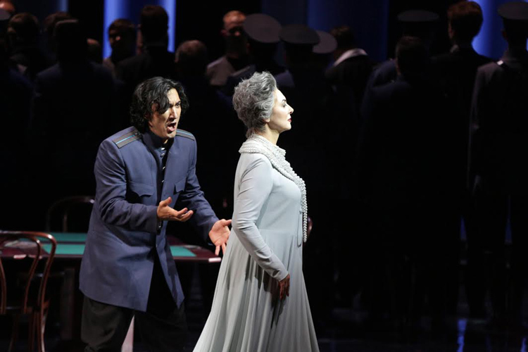© Олег Черноус Елена Гусева (Лиза) Остальные персонажи, увы, гораздо более одномерны и лишены всякого сценического обаяния, хотя, казалось бы, в распоряжении режиссера — хороший материал: солисты труппы молоды, фактурны и приучены к актерству. Возможно, со временем они лучше освоятся с величием партитуры и темпами дирижера и заживут на сцене в полную силу. Но уже сейчас понятно, что в театре есть комплект (и не один) дефицитных голосов, необходимых для главной русской оперы. Одна из находок — благородный баритон Станислава Ли в качестве Елецкого. Сопрано Елена Гусева уверенно справляется с партией Лизы, в самый ее ответственный момент — в арии у Канавки — маэстро Лазарев даже притормаживает. Ну и самый важный ингредиент, без которого тут никуда, — Герман, театр справедливо делает ставку на звонкий тенор Нажмиддина Мавлянова. В спектакле его финальная ария «Что наша жизнь? Игра!» преподносится роскошным концертным номером при включенном свете в зале — когда все ответы на вопросы и так понятны, режиссер все-таки разрешает опере снова чуть забронзоветь.
