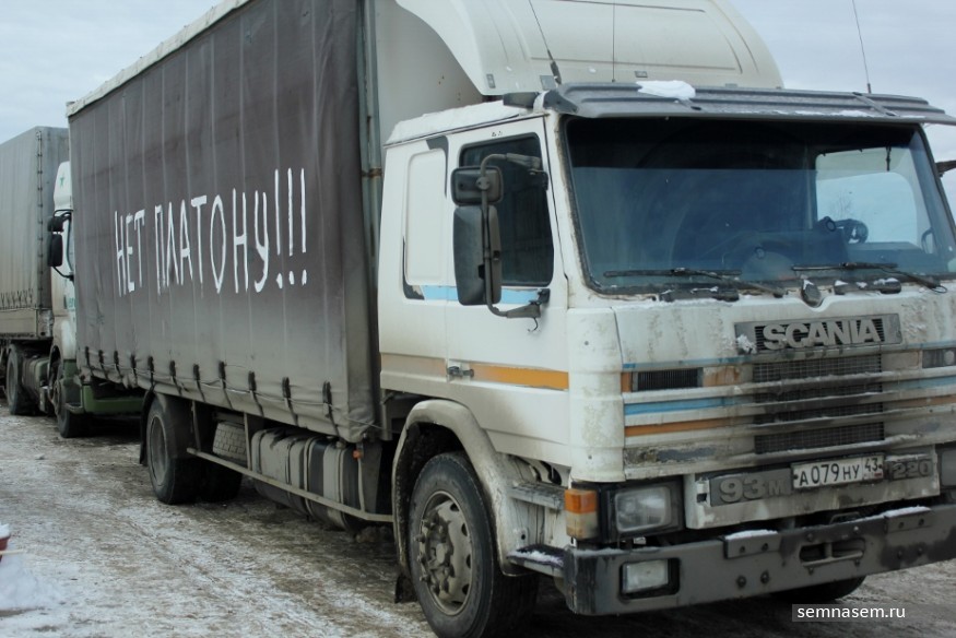 Кировские дальнобойщики 11 ноября поддержали всероссийскую акцию протеста против системы «Платон». По словам организаторов, она приурочена к годовщине введения новых сборов с грузоперевозчиков. Участники акции уверены, что власть просто игнорирует проблемы дальнобойщиков, а операторы системы набивают себе карман. В день проведения акции пресс-служба правительства Кировской области разослала релиз, в котором говорилось о том, что четверть отремонтированных дорог в области были оплачены из взносов через систему «Платон». Корреспонденты «7x7» побывали на двух акциях дальнобойщиков в Кирове — автопробеге и одном из пикетов.