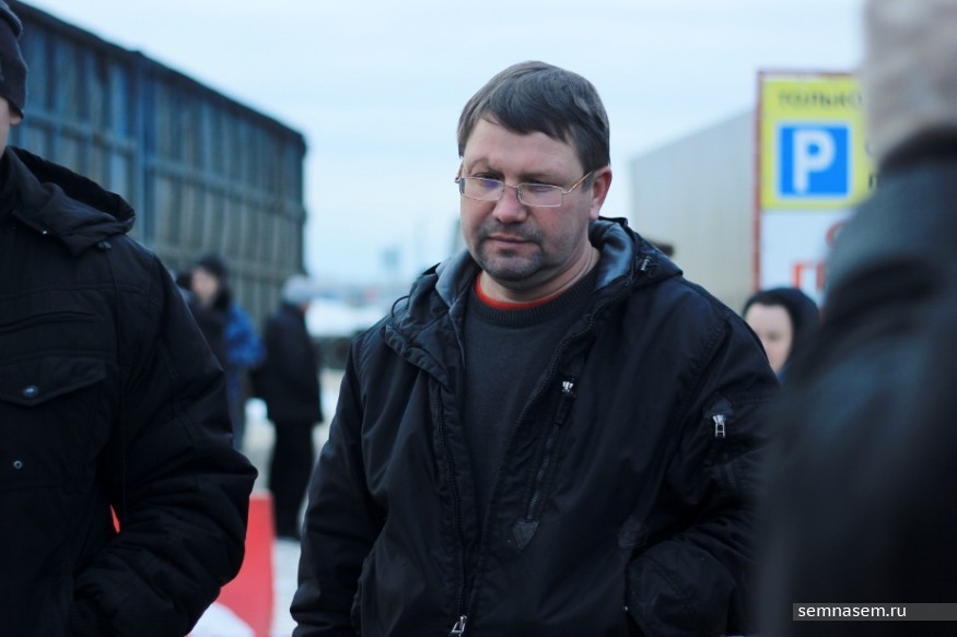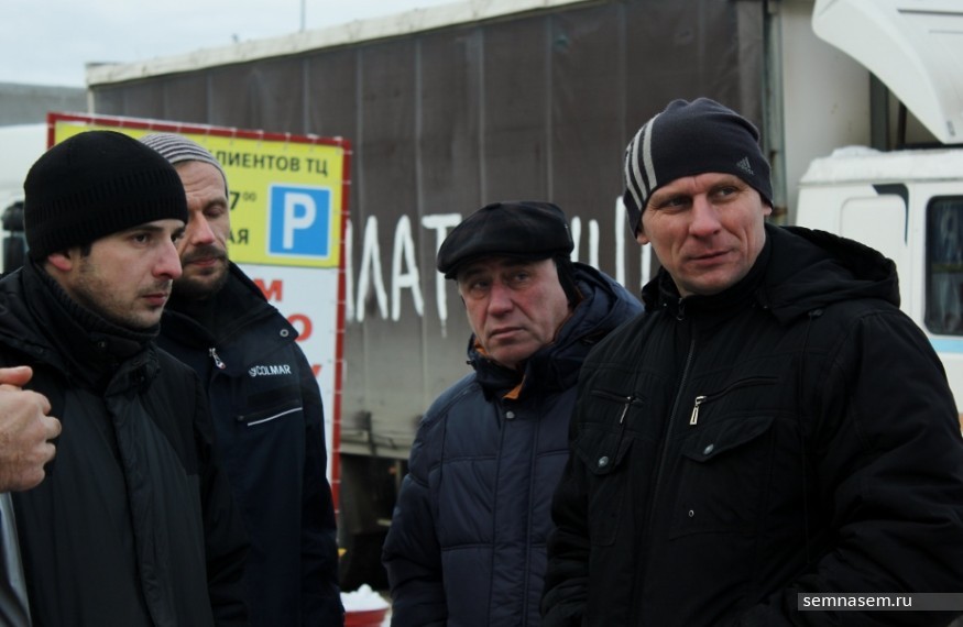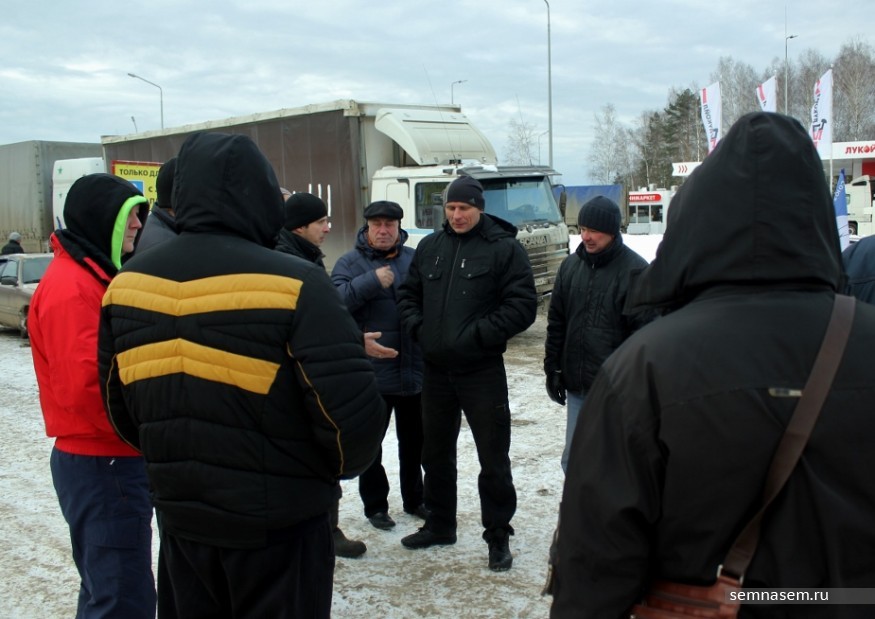 В 09:00 на выезде из города, недалеко от коттеджного поселка Гнусино стоит скопление фур. Между машинами — около 20 человек, а немного поодаль организатор акции Валерий Сояк обговаривает детали автопробега с сотрудниками ДПС. В это время рядовые участники обсуждают политическую обстановку в стране.