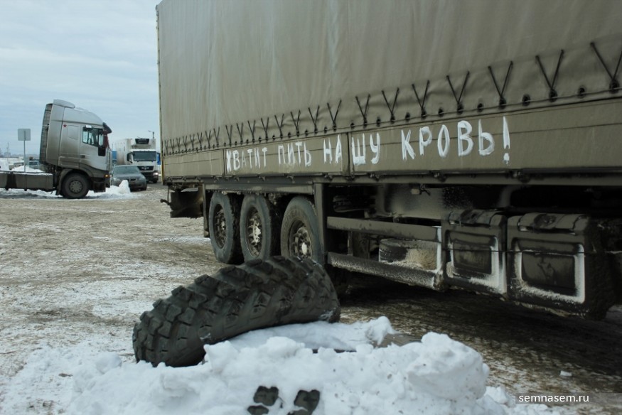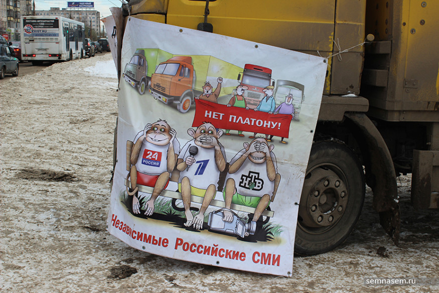 Ему объяснили, что проводится пикет против системы «Платон», и похвастались хорошо прошедшим автопробегом. Улыбчивый полицейский обошел несколько раз фуру, почитал надписи и лозунги и больше никаких вопросов не задавал, а затем принялся проверять проезжающие мимо машины.