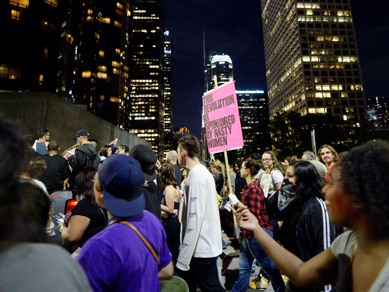 В Лос-Анджелесе демонстрации продолжались всю ночь: протестующие, собравшиеся в городском Гранд-парке, прошли по улицам до мэрии, затем вернулись обратно. Демонстрация, собравшая до 3000 человек, проходила в основном мирно, хотя один из протестующих разрисовал полицейскую машину с помощью баллончика с краской. Полицейские стали призывать собравшихся разойтись и грозили применением "нелетальной силы".