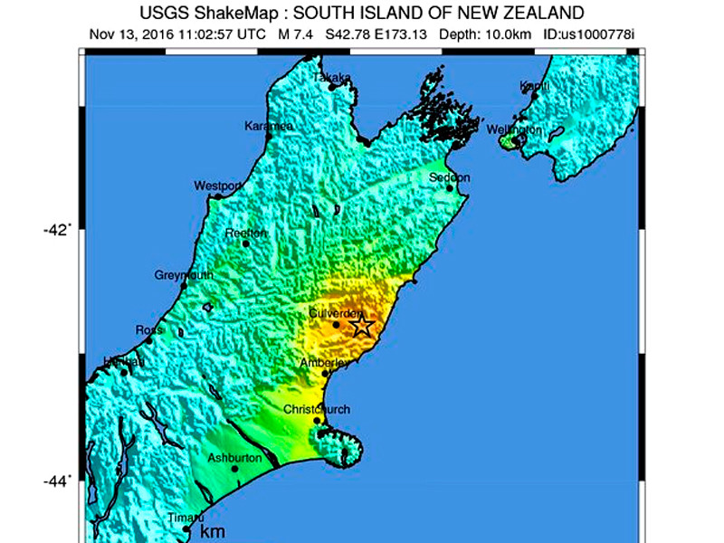 По данным USGS, эпицентр землетрясения находился близ населенного пункта Кентербери на Южном острове Новой Зеландии.