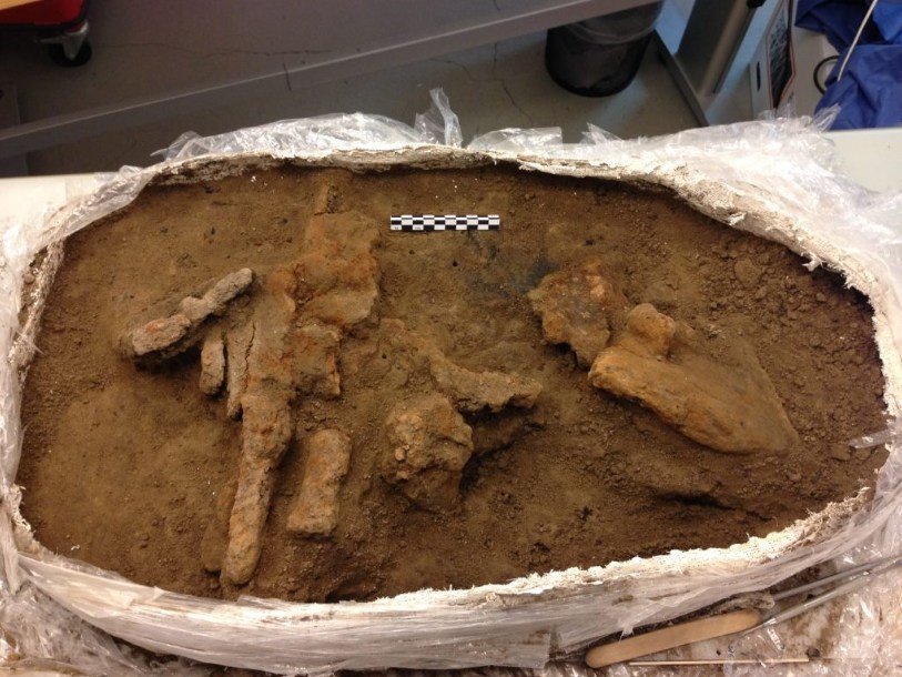 После этого ученые приступили к разбору земляного блока. Эта работа заняла у них два дня. В результате они обнаружили, что инструментов было гораздо больше. Некоторые небольшие предметы, сильно пострадавшие от коррозии, на томограмме не отразились. Пока назначение многих из них трудно установить. Извлеченные из почвы они будут подвергнуты рентгеновскому исследованию.