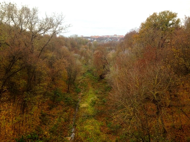 Это самый что ни на есть центр города, такой красивый мост и... огромный овраг посреди города, сжирающий полезные площади.