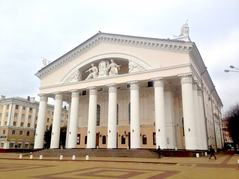 Я спросил Даню, был ли город в оккупации. Да, был. Но здесь сохранилось так много старых зданий, по сравнению, например, с разрушенным Смоленском, что я уточнил. Оказалось, во время Великой Отечественной, наученные горьким опытом, военные решили сдать её, чем разрушить при обороне. На примере Калуги видно, что к октябрю в военные стратегии начали вмешиваться экономические расчёты. К тому же освободили Калуга очень быстро - она была в оккупации с 12 октября по 30 декабря 1941 года. За разговорами вышли к театру. Калужский театр ведёт свою историю с 1777 года.