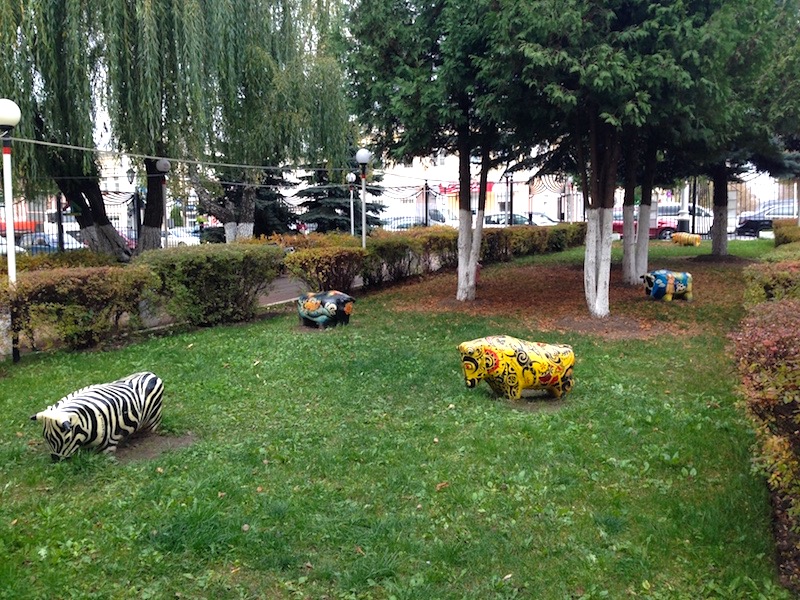 Внутренний дворик театра менее помпезен.) Бычок под хохлому просто завораживает.