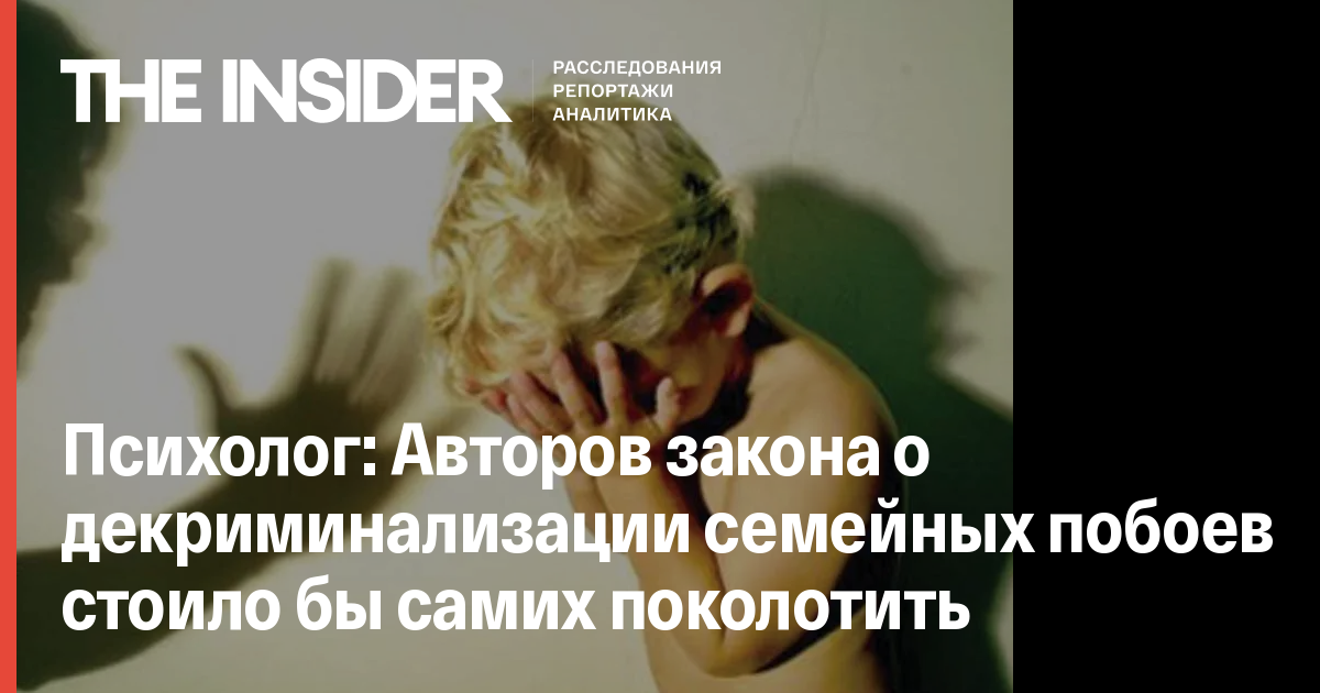 Группа депутатов Госдумы и членов Совета Федерации внесла на рассмотрение нижней палаты парламента России законопроект о декриминализации побоев в отношении близких родственников. Сторонники законопроекта уверены: если побои не повлекли за собой вред физическому здоровью, то это не является преступлением. В разговоре с The Insider президент Ассоциации детских психиатров и психологов Анатолий Северный пояснил, почему это не так.