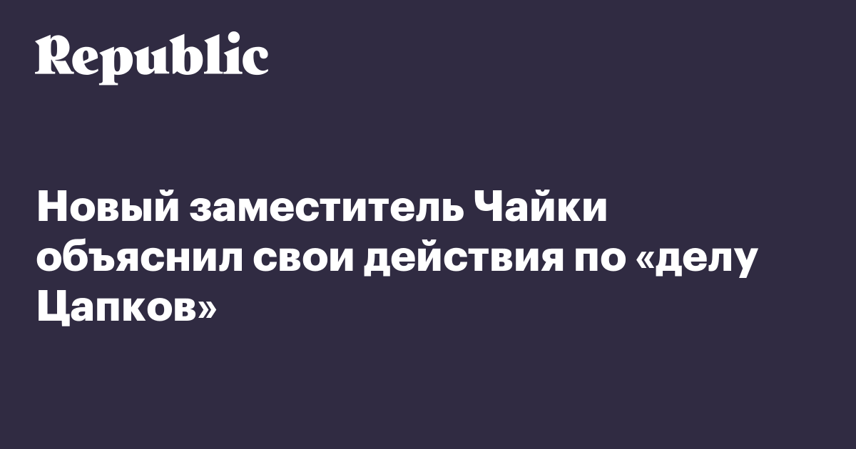 Новый заместитель Чайки объяснил свои действия по «делу Цапков»