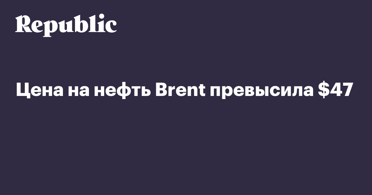 В ходе торгов на Лондонской бирже ICE стоимость барреля нефти марки Brent выросла более чем на 5,5%, достигнув отметки в $47.