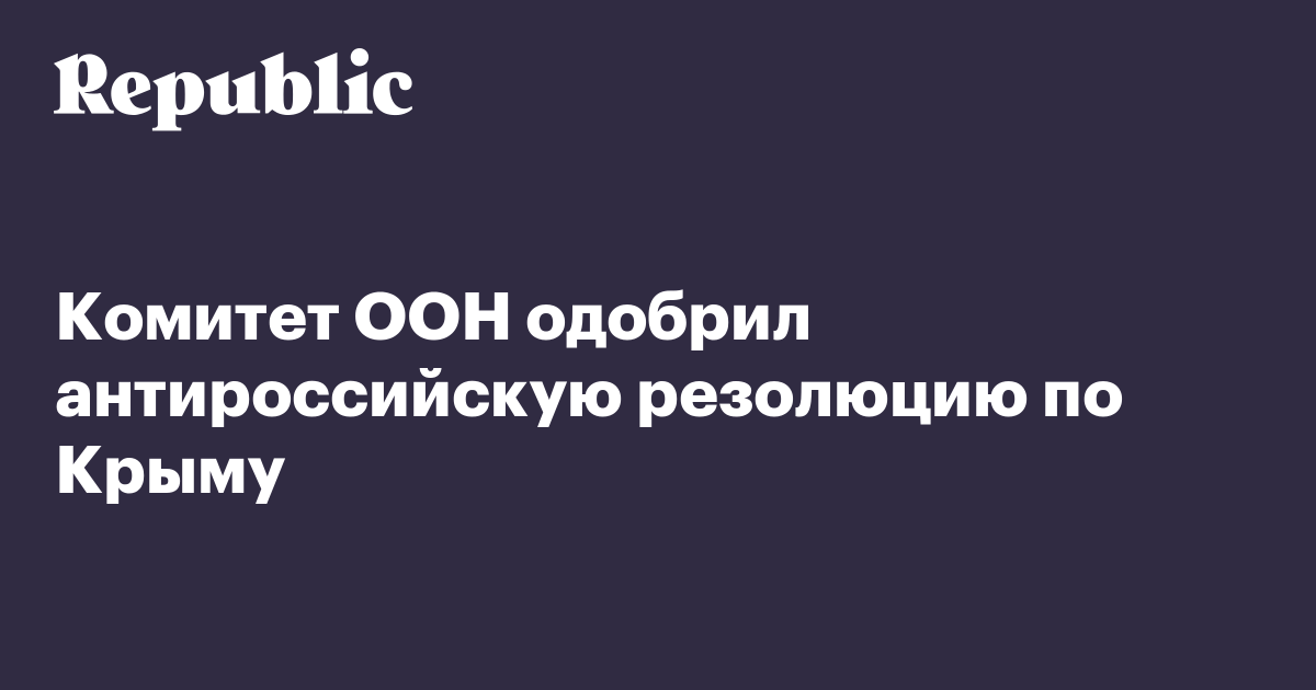 Третий комитет Генеральной Ассамблеи ООН принял резолюцию, осуждающую ситуацию с правами человека в Крыму и призывающую Россию допустить на полуостров международных наблюдателей. Об этом сообщает агентство Associated Press.