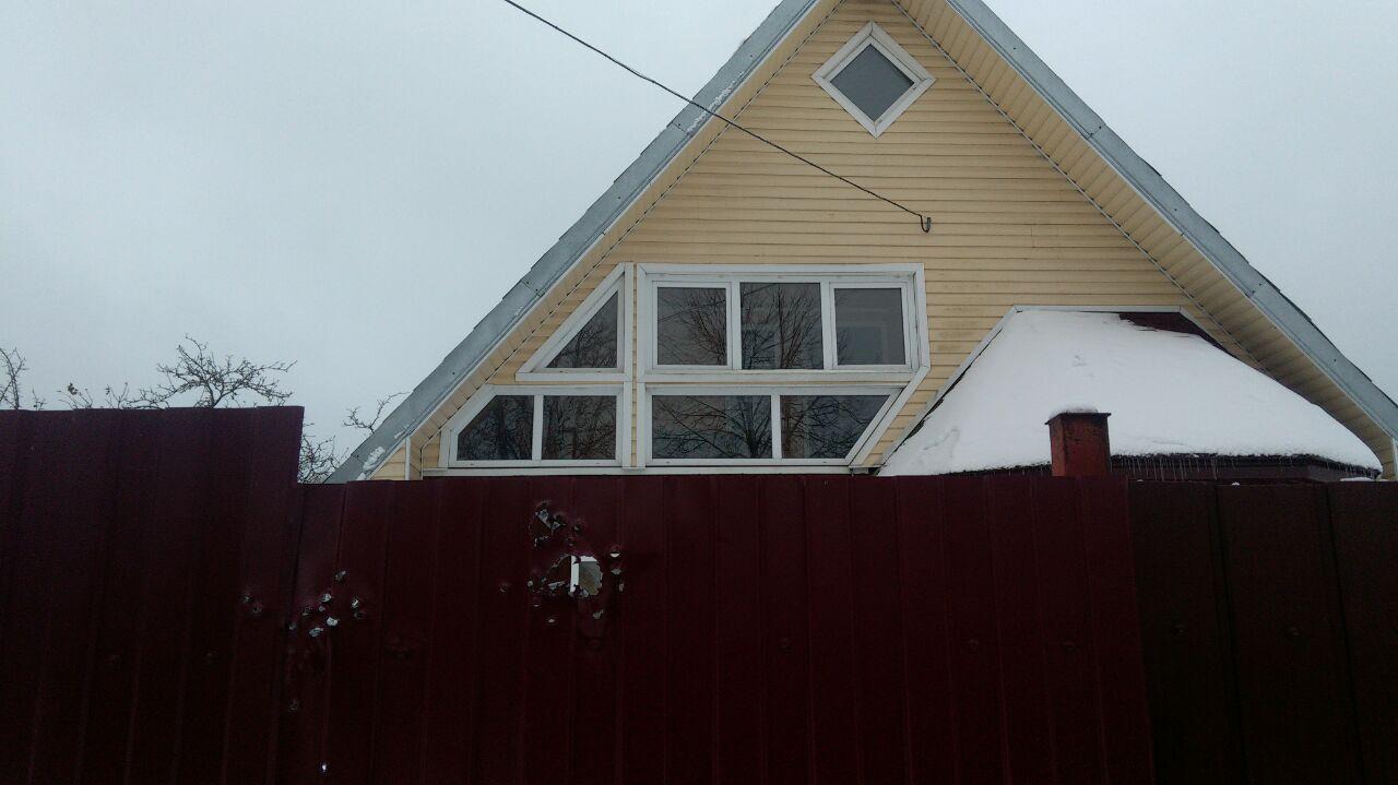 На калитке дома, где произошла трагедия, висит замок, но увидеть дворовую территорию можно через пулевые отверстия в заборе. Их здесь много, они широкие, в некоторых местах больше напоминают решето. В самом доме нижний оконный проём заколочен свежими досками.