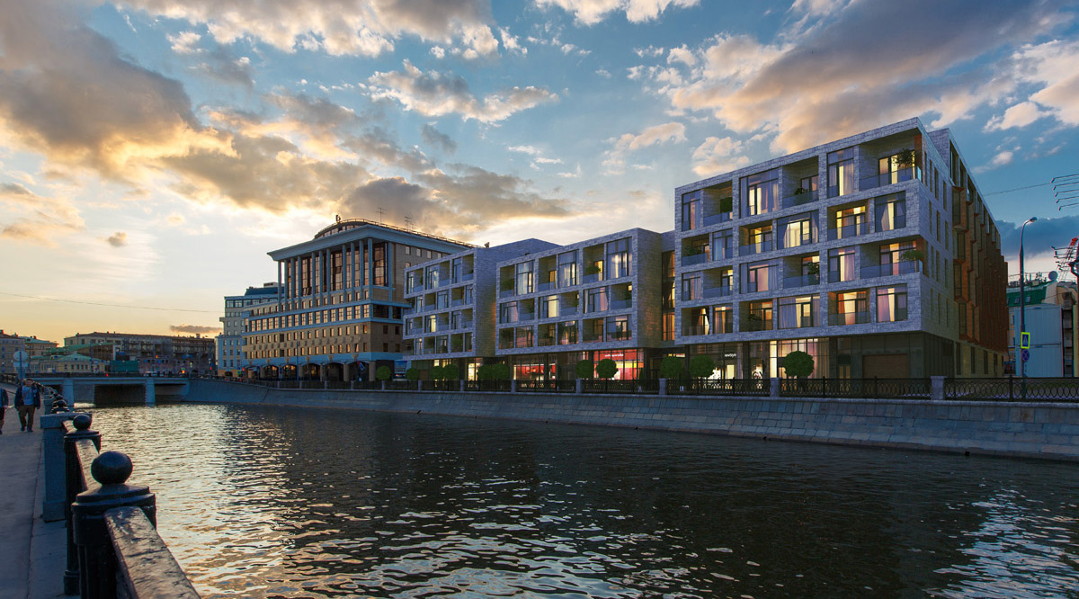 Полностью квартал состоит из 4 особняков. В каждом — от 13 до 26 резиденций. Что такое резиденция? Грубо говоря — это отдельное жилье. Оно совсем отдельное, потому что территория охраняется, а у некоторых резиденций есть свой отдельный вход. Проектировал Balchug Residence известный архитектор Хади Тегерани. Его проект «Танцующие башни» в Гамбурге — два небоскреба, которые будто бы прижались друг к другу в танце, получил премию одной из крупнейших выставок недвижимости MIPIM Award.