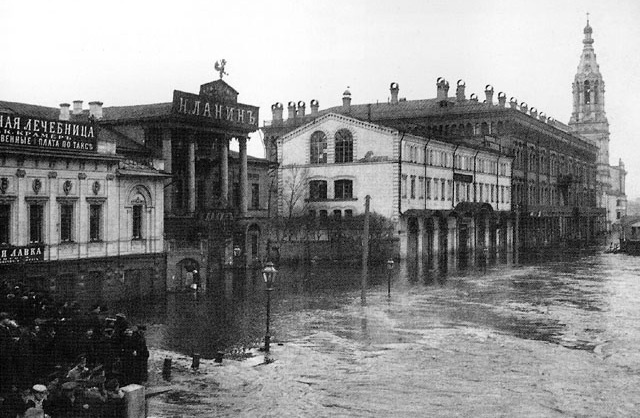 Остров Балчуг сильно пострадал во время наводнения в апреле 1908 года — самого страшного в истории Москвы. Собственно, во время пика катастрофы, когда уровень воды в Москве-реке поднялся почти на девять метров, острова, можно сказать, и не стало: река и Водоотводный канал слились в одно русло. До наших дней сохранились две таблички с отметками об уровне воды в те дни — одна на доме № 4 по Якиманской набережной, а вторая — на здании Раушской ГЭС.
