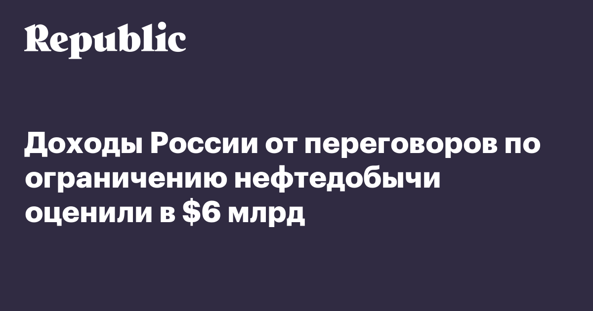 Доходы России от переговоров по ограничению нефтедобычи оценили в $6 млрд