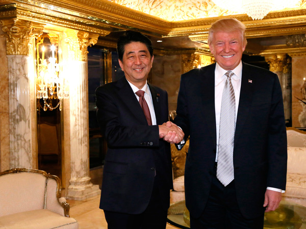 Премьер-министр Японии Синдзо Абэ и президент США Дональд Трамп / twitter.com Guardian пишет о встрече Трампа с премьер-министром Японии Синдзо Абэ. Это была первая встреча Трампа уже в качестве избранного президента с лидером другой страны. После этой встречи Япония, одна из ближайших союзниц США, «осторожно вздохнула с облегчением». Авторы в подтверждение своего тезиса приводят дипломатические реверансы вокруг этой встречи – в первую очередь, со стороны Абэ, который отозвался об этой встрече как о внушающей большие надежды.
