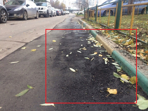 Я, конечно же, стал задавать вопросы про ужасное качество работ по замене дорожного покрытия в этом году. Говорил ему, что асфальт крошится и разваливается уже через день после их работ.Какого было моё удивление, когда он сказал, что не знает об этих случаях. Меня это немного шокировало, это говорит о том, что он: либо знает об этих нарушениях, но не говорит, либо действительно не знает..., тогда возникает вопрос, он на машине по району ездит, что ли?! Предлагаю ходить пешком или купить велосипед. Прилагаю ниже фотографию, которая сделана через сутки после асфальтирования: