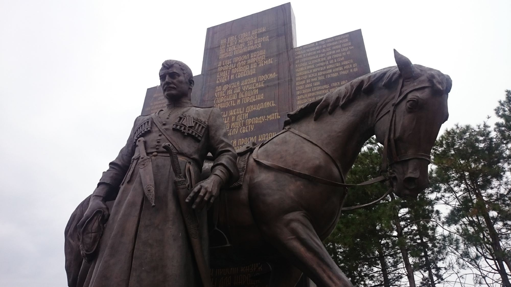 Год назад станицу Бриньковскую Приморско-Ахтарского района Краснодарского края посетили высокие гости: генпрокурор Юрий Чайка, министр культуры Владимир Мединский, скульптор Зураб Церетели, полпред президента в ЦФО и одновременно председатель совета при президенте по делам казачества Александр Беглов, замгубернатора края, атаман Кубанского казачьего войска Николай Долуда и даже генпрокурор Белоруссии Александр Конюк. Чайка, Беглов и Церетели перерезали ленточку на торжественном открытии памятника кубанским казакам. Упала белая простыня, обнажила склонившего голову брознового казака вместе с верным бронзовым конем на фоне огромного бронзового креста.
