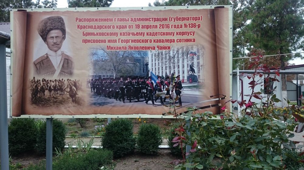 Бронзового Чайку поставили на территории казачьего кадетского корпуса. Сам корпус тоже переименовали — в честь героического сотника. Станица воспитала больше трех десятков георгиевских кавалеров, а Чайку выбрали потому, что его потомки до сих пор служат Отечеству, говорит директор учебного заведения Анатолий Каражов. Сегодня фактически треть всех семей в Бриньковской — дальние родственники Чайки.
