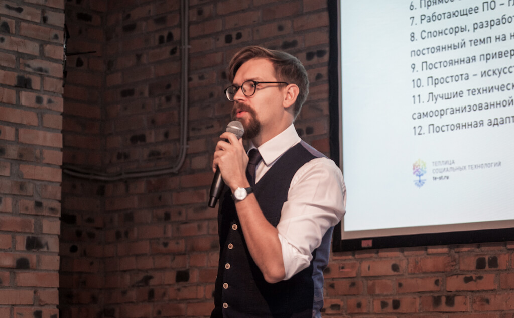 Алексей Сидоренко, руководитель Теплицы социальных технологий, рассказал про гибкую методологию разработки Аджайл (англ. Agile software development, agile – методы) в применении к общественным проектам и представил 12 принципов «Некаджайла» (Аджайл для НКО).