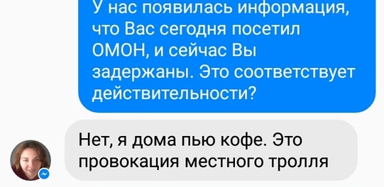 В другой раз некто передал информацию о задержании Полюдовой и каких-то ее знакомых, объясняя, что сам он ничего не знает, а его попросили сообщить о задержании «через знакомого адвоката». Ни в тот, ни в другой раз информация о задержании не подтвердилась. Поступал звонок и от человека, представившегося сотрудником Центра по противодействию экстремизму, который утверждал, что проводит у Полюдовой обыск из-за того, что она якобы призывала к беспорядкам в станице, и что она якобы сама попросила его позвонить ОВД-Инфо. Сама Полюдова позднее сообщила, что сидит спокойно дома, занимается юридической практикой, и никакого обыска у нее нет.