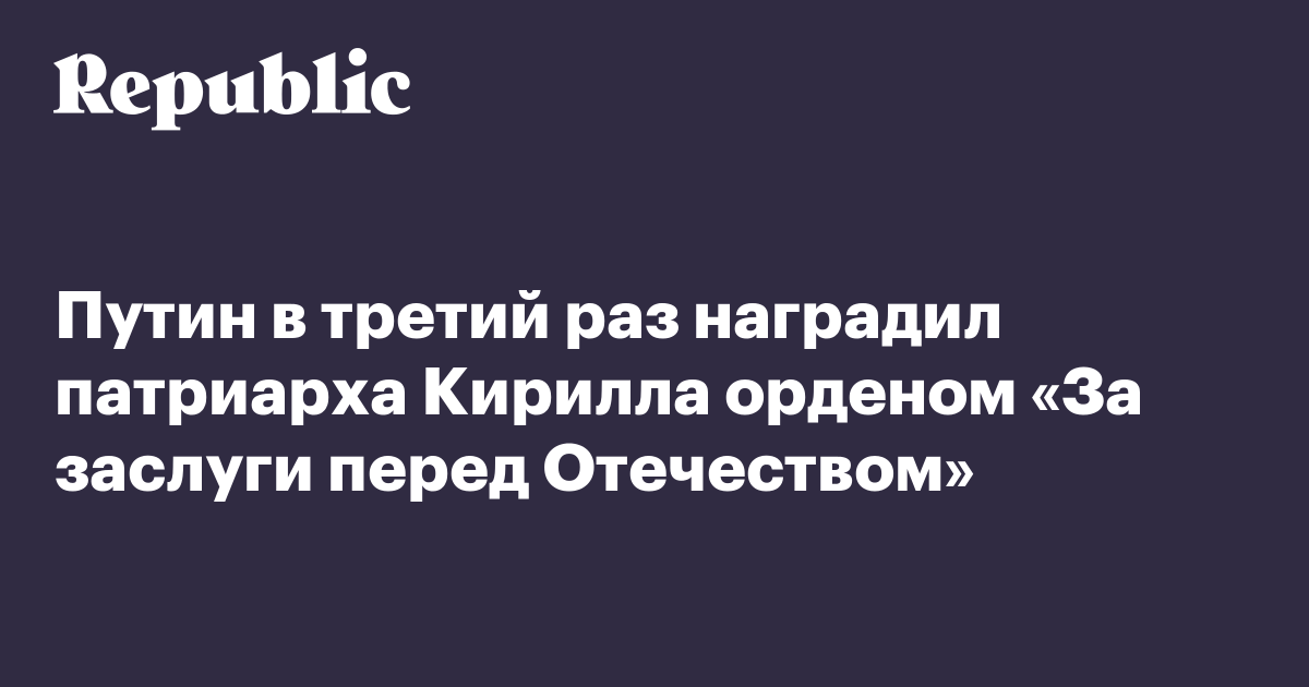 Президент РФ Владимир Путин наградил патриарха Кирилл орденом «За заслуги перед Отечеством» I степени. Указ опубликован на сайте Кремля.