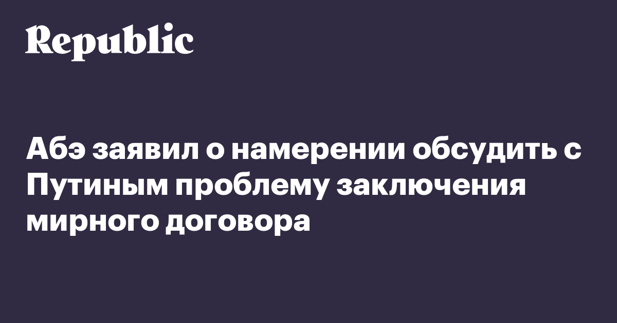 Премьер-министр Японии Синдзо Абэ намерен обсудить с президентом России Владимиром Путиным проблему заключения мирного договора, а также вопросы, связанные с подготовкой визита российского президента в Японию, сообщает «Интерфакс».