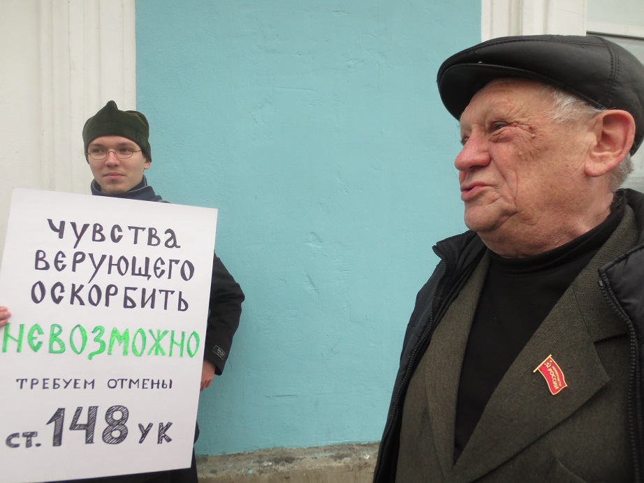 И поставил на плакате со словами «Чувства верующих оскорбить невозможно» размашистую подпись.