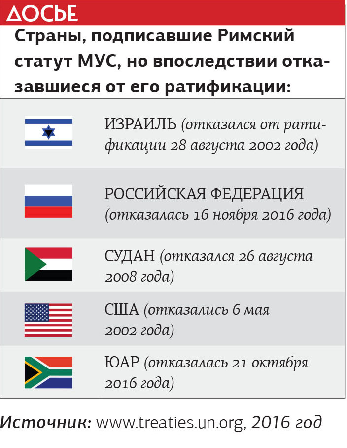 С одной стороны, в самом этом факте нет ничего из ряда вон выходящего. В конце концов свою подпись под Римским статутом отозвали и США, и Израиль. Так же совсем недавно поступила и ЮАР, после того как отказалась арестовать и выдать МУС скрывавшегося на ее территории экс-президента Судана Омара аль-Башира, в отношении которого есть ордер на арест за военные преступления.