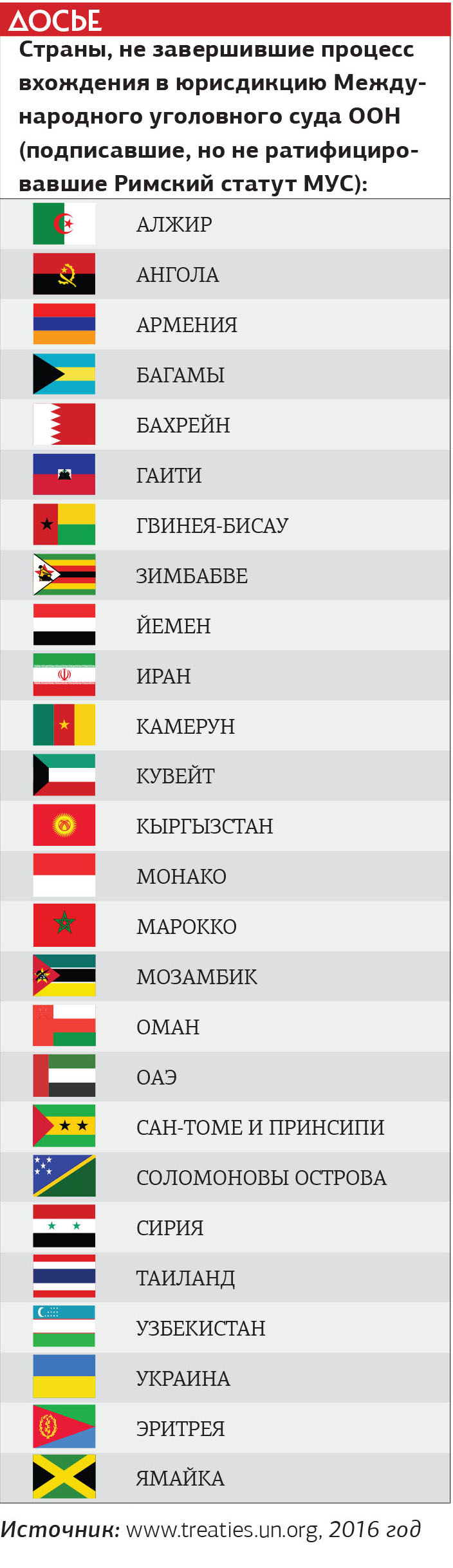 И еще немаловажная деталь, особенно на фоне молниеносного выхода РФ из юрисдикции МУС. В статье 27 Римского статута есть тезис, который тоже имеет смысл процитировать: «…должностное положение как главы государства или правительства, члена правительства или парламента, избранного представителя или должностного лица правительства ни в коем случае не освобождает лицо от уголовной ответственности согласно настоящему Статуту и не является само по себе основанием для смягчения приговора». Ни больше ни меньше.