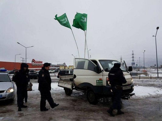 Далее подъехавшие полицейские (более 5 человек) вели себя агрессивно, мешали мне убирать символику профсоюза, толкали меня в лужу, защемляли меня дверью моего автомобиля, не позволили согреть окоченевшие от холода и воды руки, задавали бесконечное количество вопросов и требовали одновременного ответа. Полицейские потребовали паспорт, который я предъявил и поинтересовался законными основаниями и причинами с их стороны, на что внятный ответ не получил. Далее сотрудники потребовали проследовать на моей машине за ними в неизвестном направлении, на что я дал согласие, но попросил учесть, что по правилам дорожного движения флагшток, прикрепленный мной на автомобиль, выходит за предельно допустимые габариты по высоте. Далее сотрудник полиции потребовал сесть в патрульную машину и проследовать в участок, на что я попросил время для запирания машины и уборки внутрь салона автомобиля символики, к чему немедленно приступил. Сотрудники не дожидаясь завершения уборки потребовали сесть в патрульную машину. Я был задержан сотрудниками полиции и доставлен в участок. (Имеется видеофиксация от коллег, знакомых и журналистов, которые подбежали в момент моего задержания.) Сотрудник полиции отказался составить протокол моего доставления или задержания на месте событий, сославшись на погоду.