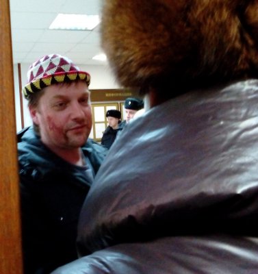 Утром я потребовал меня выпустить или предъявить обвинения, я беспокоился за состояние здоровья своей мамы, инвалида первой группы. Сотовый телефон мне не позволили взять. Я был свидетелем ужасного морального и физического состояния своих новых знакомых, которые сидели со мной в клетке. В 11 часов, по прошествии 24 часов с момента задержания, я потребовал принять ходатайство о предоставлении прокурора, но мои требования проигнорировали сотрудники дежурной части полицейского участка. Я сознательно решил нанести себе порезы рук стеклом, в знак протеста и привлечения внимания общественности к происходящему беспределу. Порезал руки, измазал лицо кровью и проглотил стекло. Потребовал вызвать скорую помощь. Ко мне вызвали психиатра, которому я все объяснил и отказался от его услуг. На просьбу вызвать «скорую помощь» для моей госпитализации, сотрудники полиции ответили отказом и доставили меня в суд 12.11.2016 примерно в 16 часов.