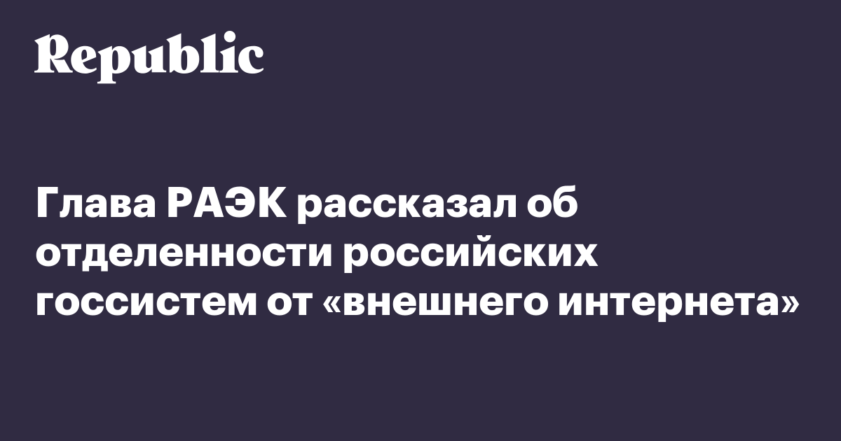 Глава РАЭК рассказал об отделенности российских госсистем от «внешнего интернета»