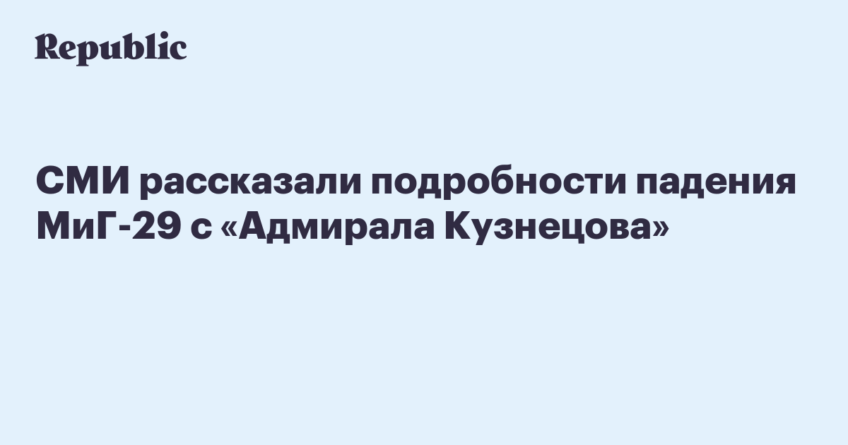 Таким образом, МиГ-29 с размахом крыла 11 метров и длиной более 17 метров надо попасть в прямоугольник очень небольшого размера, пишет «Газета.Ru». В день, когда появились сообщения о крушении российского МиГ-29, с крейсера взлетели три таких истребителя, передает издание.