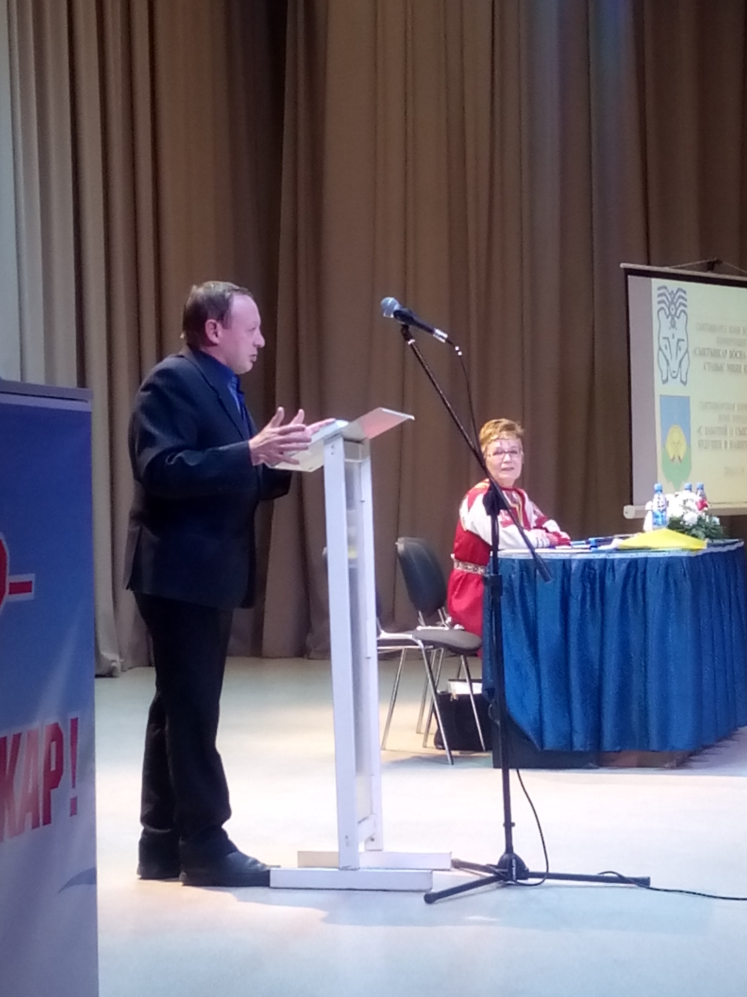 Перед началом конференции почтили память народного поэта Республики Коми В.В. Тимина и коми писателя и драматурга Г.Д. Горчакова, участвовавших почти во всех ежегодных конференциях и Съездах коми народа. Участников конференции приветствовал председатель Совета города В.В. Козлов и и.о. Главы администрации МО ГО «Сыктывкар» В.Б. Голдин, наградивший общественников Почетными грамотами и благодарственными письмами. Владимир Борисович выступил с докладом о проделанной за год работе по выполнению Резолюции отчетно-выборной конференции коми народа г.Сыктывкар от 6 ноября 2015 года. Доклад и презентация доклада размещены на сайте администрации города. Кстати, он выслушал абсолютно все доклады.