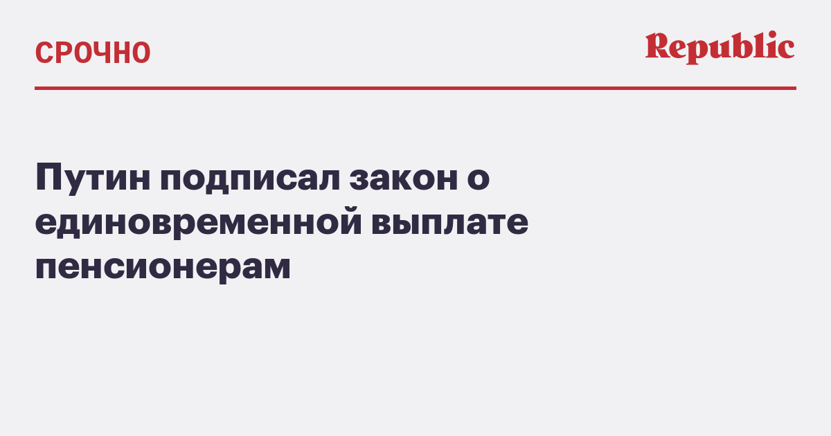 Путин подписал закон о единовременной выплате пяти тысяч рублей пенсионерам в январе 2017 года. Закон опубликован на официальном портале правовой информации.